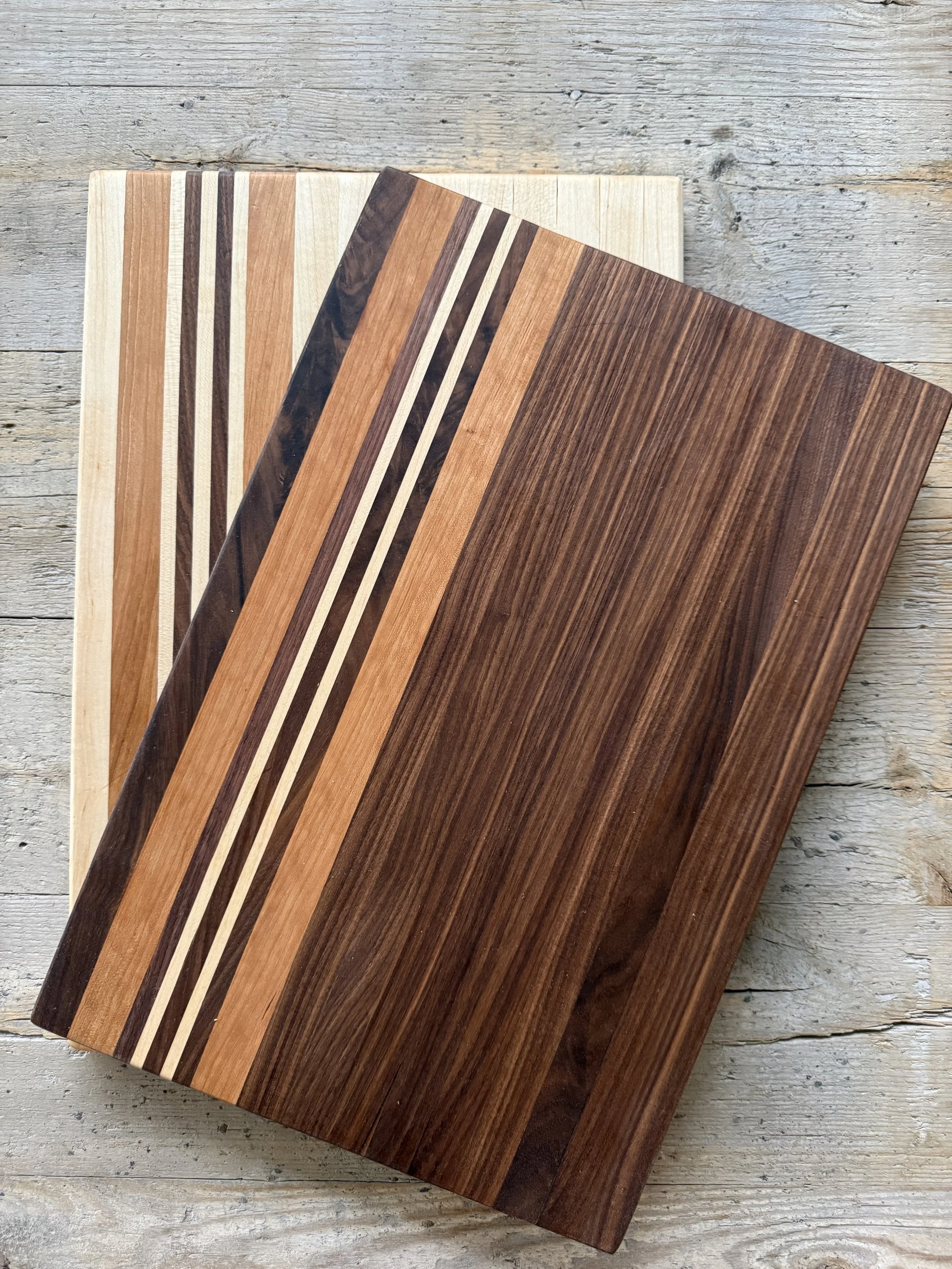 We make cutting boards, charcuterie boards that have ended up at more dinner parties than we've been invited to, cocktail smokers nobody asked us to build, and a handful of other things.