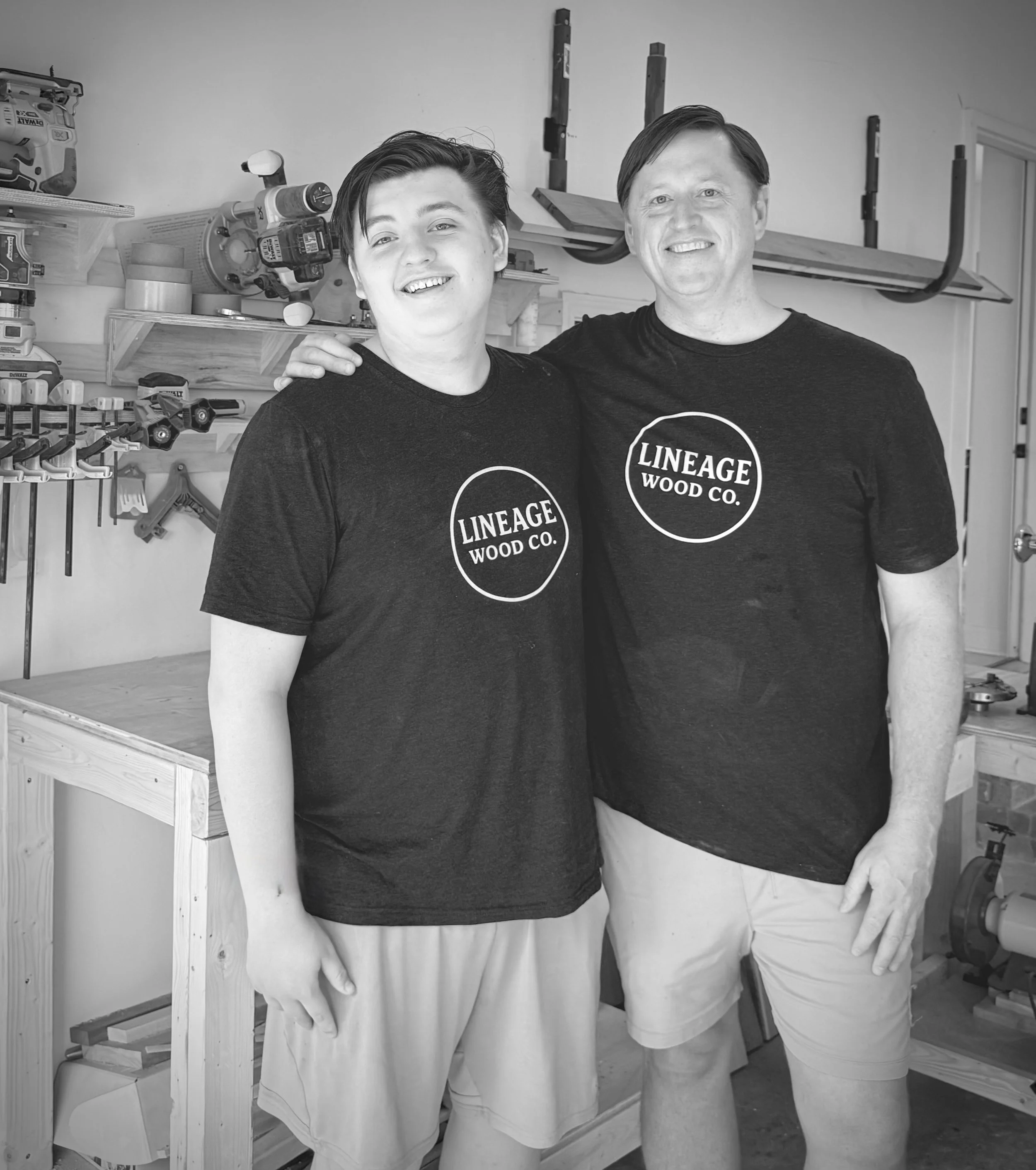 We're a father and son who started a woodworking business because of a school project and kept going because we couldn't stop.